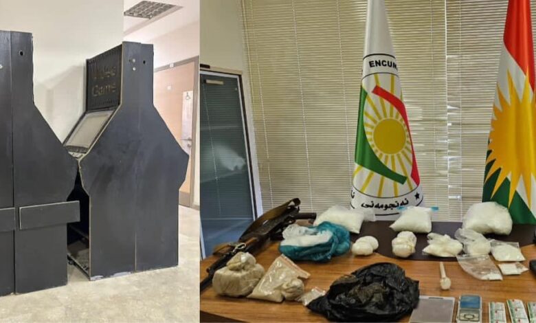 دەست بەسەرداگرتنی بڕی (٥،٥) پێنج کیلۆگرام و نیو ماددەی هۆشبەرو (٥) پێنج ئامێری قومارکردن.