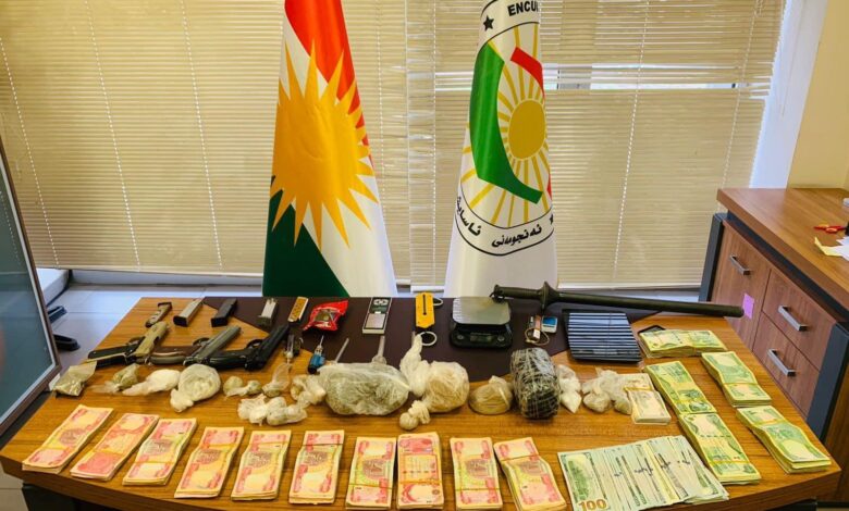 ئه‌مرۆ پێنجشه‌م 16ی11ی2023، به‌رێوه‌به‌رایه‌تی نەهێشتنی ماددە هۆشبەرەکان بڵاویكرده‌وه‌، لە بەردەوامی هەوڵەکانی بەڕێوەبەرایەتیەکەمان لە بەرەنگاربوونەوەی مادەهۆشبەرەکان لەڕێکەوتی 15ی11ی 2023، لەئەنجامی کۆکردنەوەی زانیاری و بەدواداچوونی ورد و بەردەوام ، دوای وەرگرتنی بڕیاری دادوەری لێکۆڵینەوەی ئاسایش، لەچاڵاکیەکی سەرکەوتوودا توانرا چوار تۆمەتباری مەترسیدار دەستگیربکرێن کەکاری بازرگانی و کڕین و فرۆشتن بەمادەی هۆشبەرەوە دەکرد.