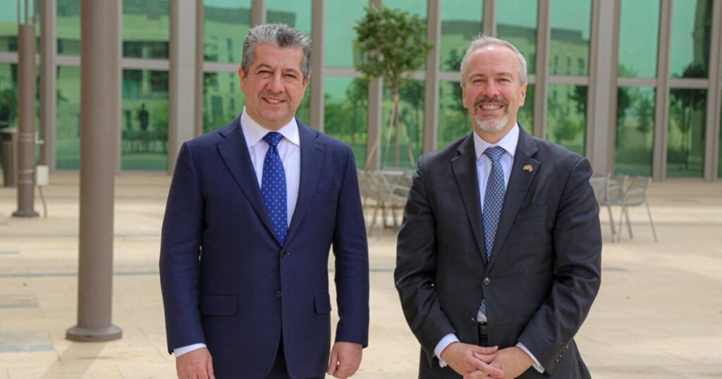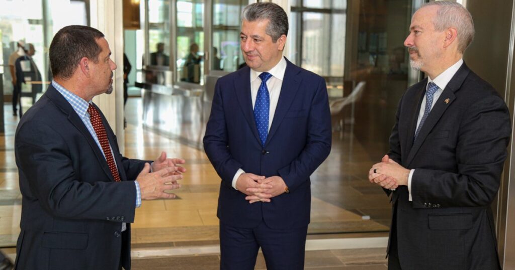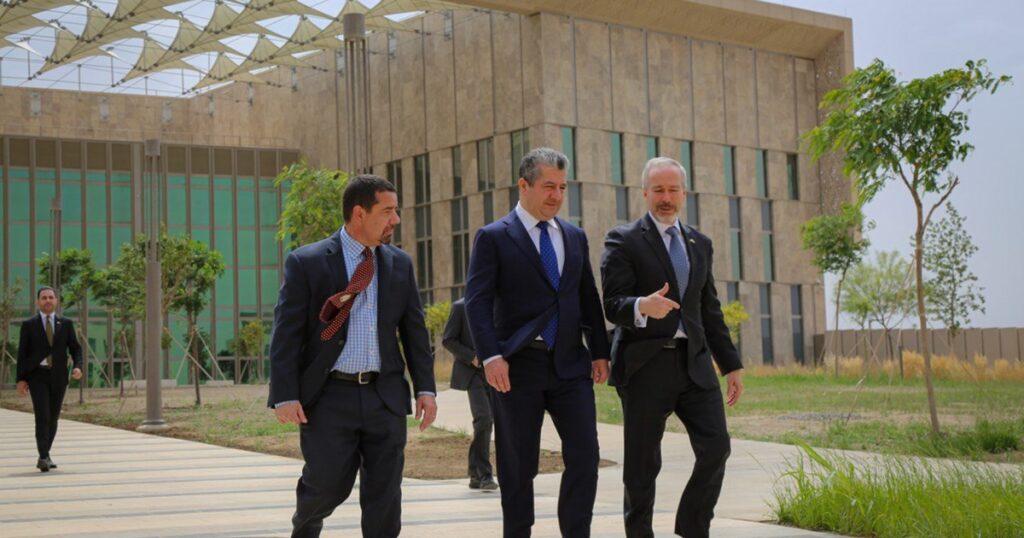 ئەمڕۆ سێشەممە 5/13 ، مەسرور بارزانی سەرۆکی حکومەتی هەرێمی کوردستان ، لە هەولێر، سەردانی باڵاخانەی نوێی کونسوڵخانەی ئەمەریکای کرد و لەلایەن ستیڤن بیتنەر کونسوڵی گشتیی ئەمەریکا پێشوازی لێکرا.