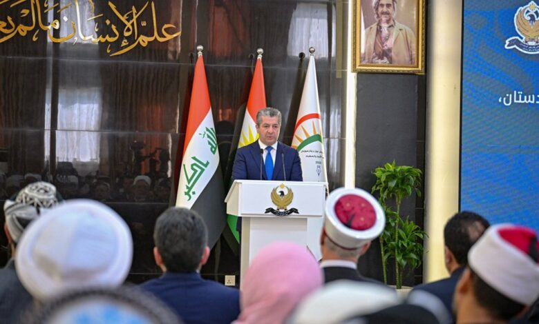 لە گوتارێكدا كە لە ڕێورەسمەكەدا پێشكەشی كرد، سەرۆكی حكومەت باسی لەوە كرد كە مامۆستایانی ئایینی ڕۆڵێكی زۆر گرنگیان لە مێژووی بزووتنەوەی رزگاریخوازی گەلی كوردستان ڕۆڵێکی دیار و بەرچاویان لە بەرگریکردن لە مافە ڕەواکانی گەلی کوردستان و پرسە نیشتمانییەکان و گەشەپێدانی هزری میانڕەوی و بەیەکەوەژیانی ئاشتییانەی ئایینی لە کوردستان گێڕاوە.