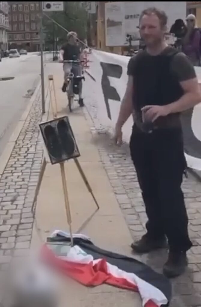 ئهمڕۆ دووشهممه ٢٤/٧٢٠٢٣ له بهردهم باڵیۆزخانهی عێراق له كۆپنهاگنی پایتهختی دانیمارك، دوو كهس كۆپییهكی قورئانی پیرۆزیان سووتاند.