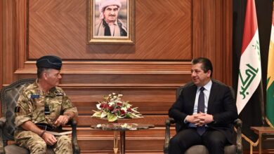 مەسرور بارزانی پێشوازی لە شاندێکی سەربازیى بەریتانی دەکات