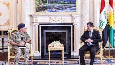 مەسرور بارزانی پێشوازی لە شاندێكى سهربازيى بهريتانى دەکات
