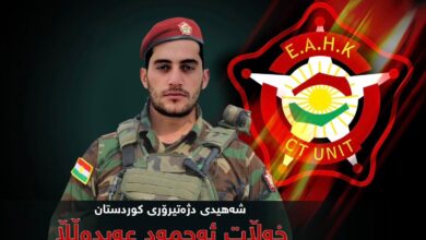 بە ناوی خودای گەورە و میهرەبان بە داخێكی زۆرەوە ئەمڕۆ پێنجشەممە 23ی ئادار، خەڵات ئەحمەد عەبدوڵڵا، پێشمەرگەی دژەتیرۆری کوردستان بە…