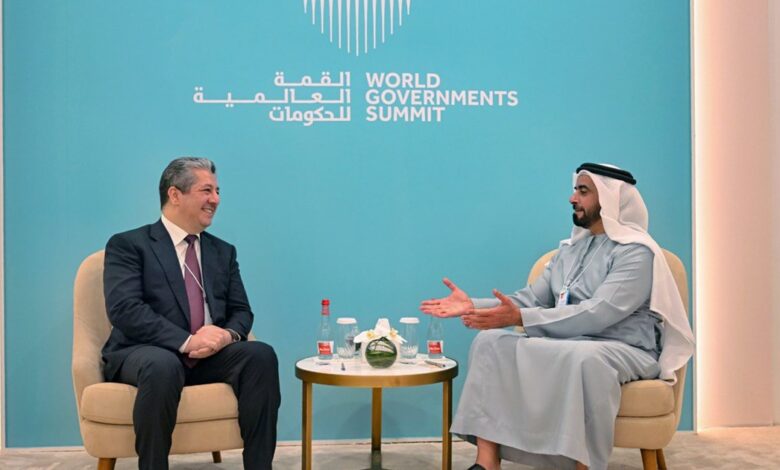 مەسرور بارزانی لەگەڵ سەرۆکی لوتکەی جیهانیی حکومەتەکان و وەزیری کاروباری ئەنجومەنی وەزیرانی ئیمارات کۆبووەوە